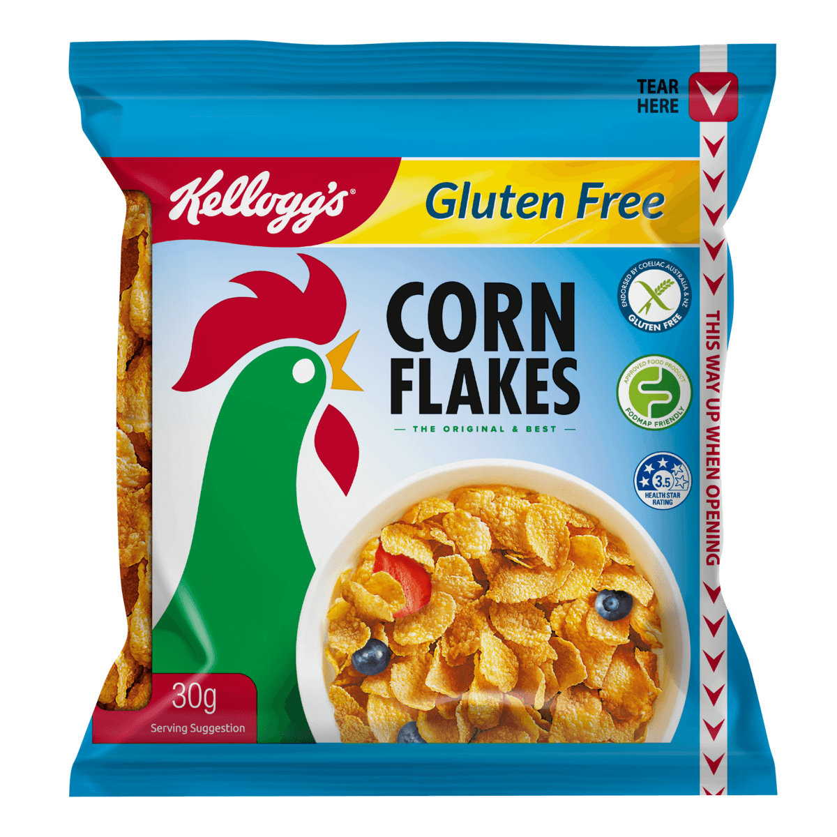 Kellogg’s® Corn Flakes Gluten Free are crispy, golden flakes of corn that look and taste just as good as original Corn Flakes - without the gluten! Crunchy and delicious, it's the perfect gluten free breakfast cereal.